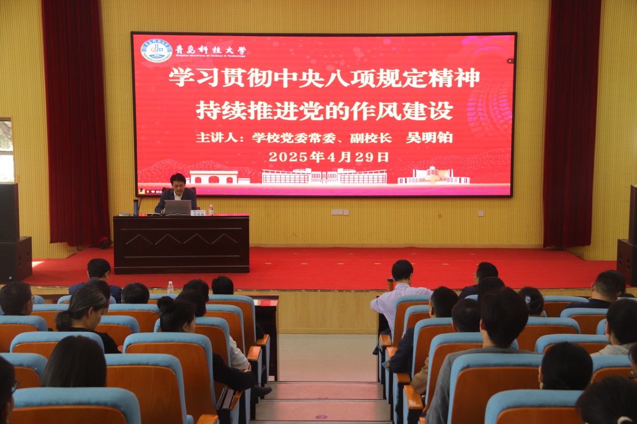 为深入贯彻中央八项规定精神,推动党员作风建设走深走实,4月29日下午,公司党委常委、副董事长吴明铂在四方校区尚舜报告厅为分管、联系单位讲授《学习贯彻中央八项规定精神,持续推进党的作风建设》专题党课。科技处、人文社科处、图书馆、学报编辑部、化公司、谈球吧官方网站、生物工程公司等教师党员参加党课学习。继续教育公司党总支书记郭曰铎主持党课。