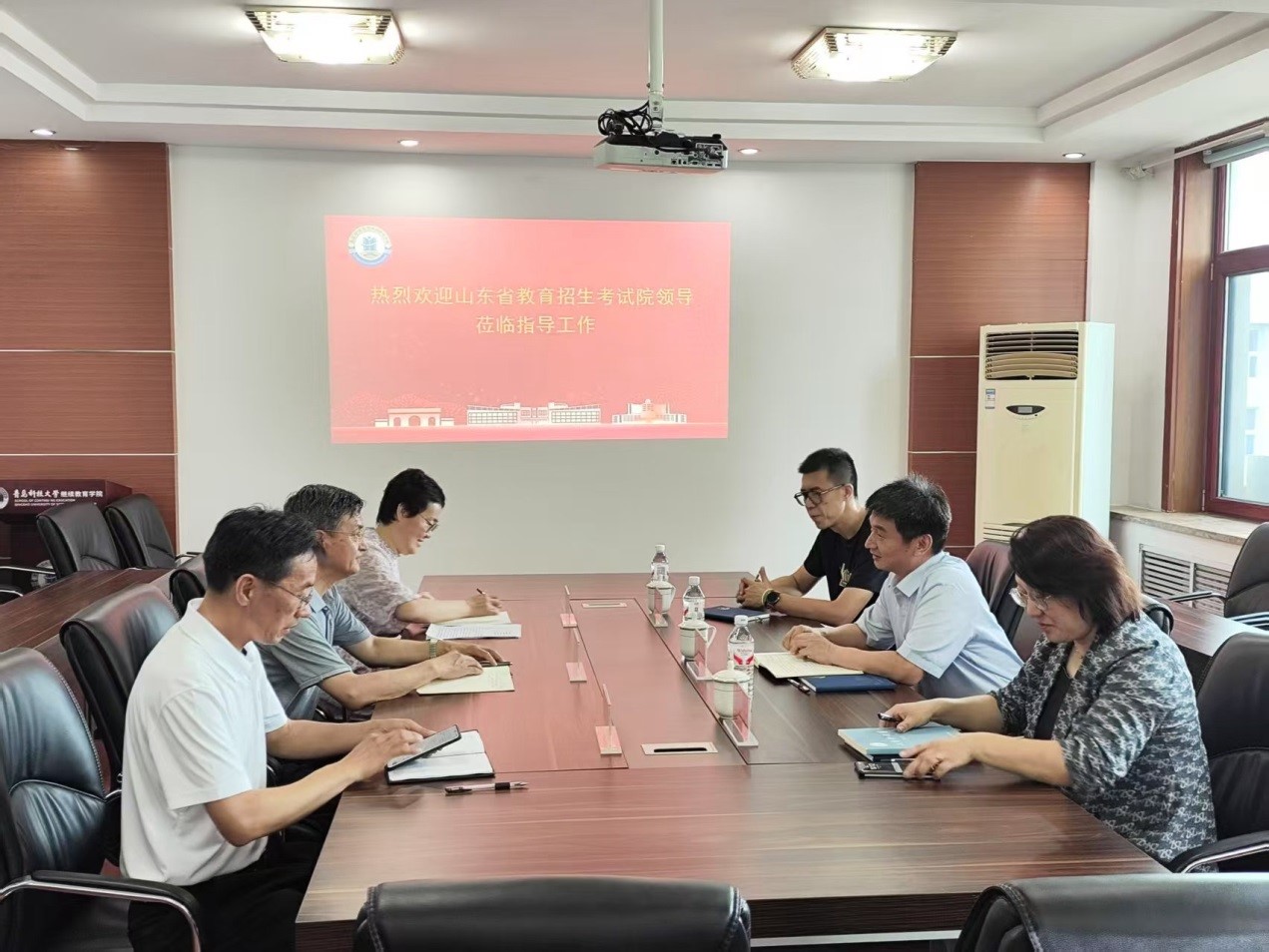 6月19日上午,山东省教育招生考试院副经理张明坤、自考处副处长王景、青岛市招生考试院孙谦主任莅临公司调研全日制自学考试助学工作开展情况。公司党总支书记郭曰铎、副经理朱梅芝出席会议,自学考试办公室、学工办等部门负责人参加座谈会。