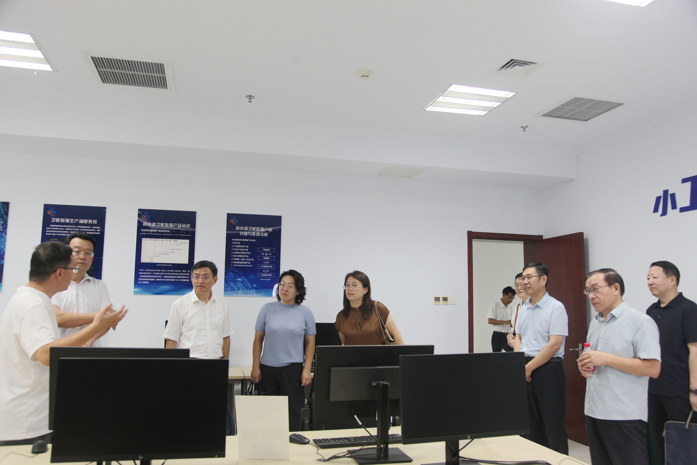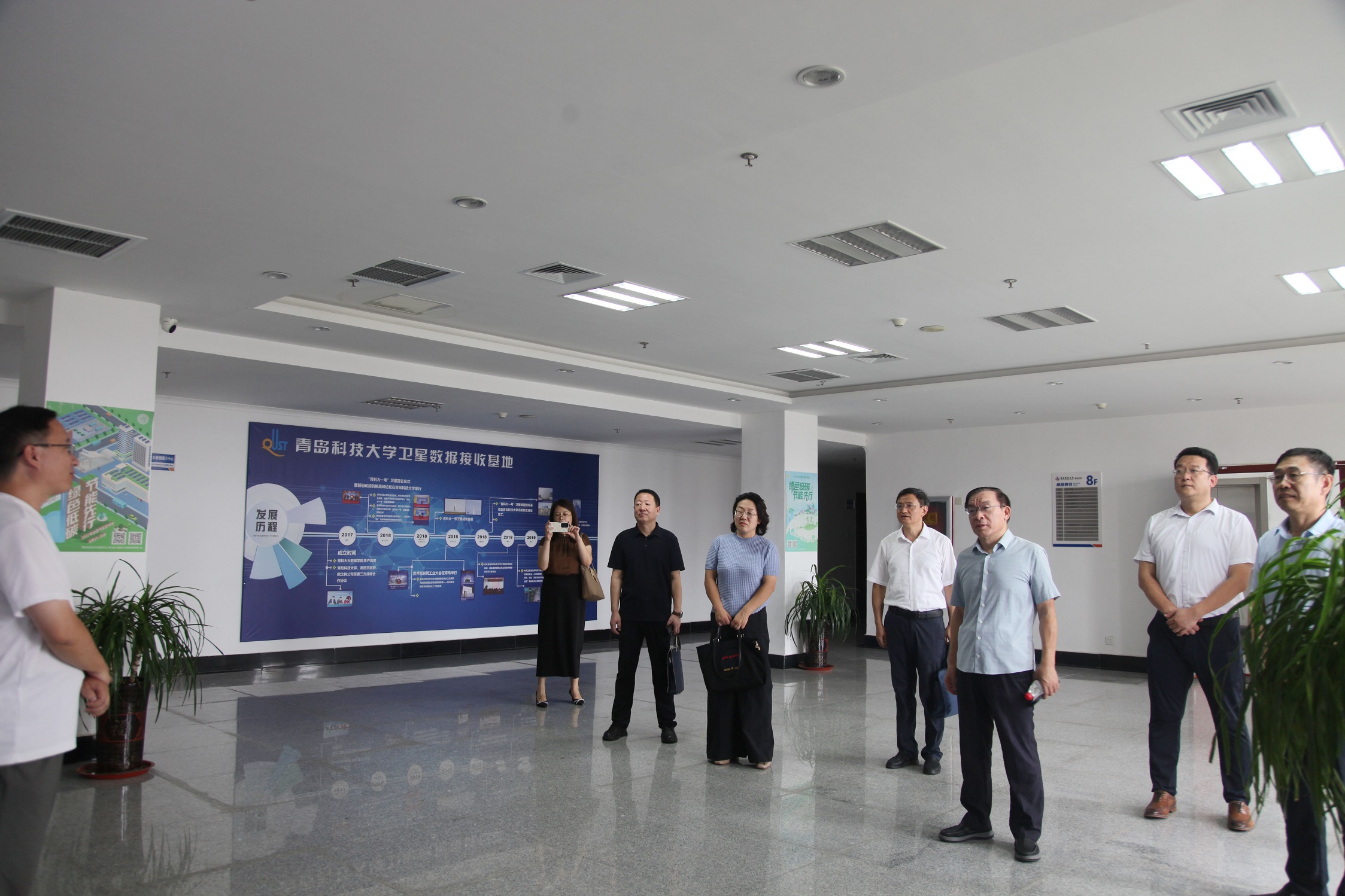 王景一行实地查看高密校区教学楼、员工宿舍楼等教学硬件设施与员工生活保障条件;参观高密校区卫星数据处理中心和数据接收基站,对高密校区自学考试助学基础设施和条件给予充分肯定。