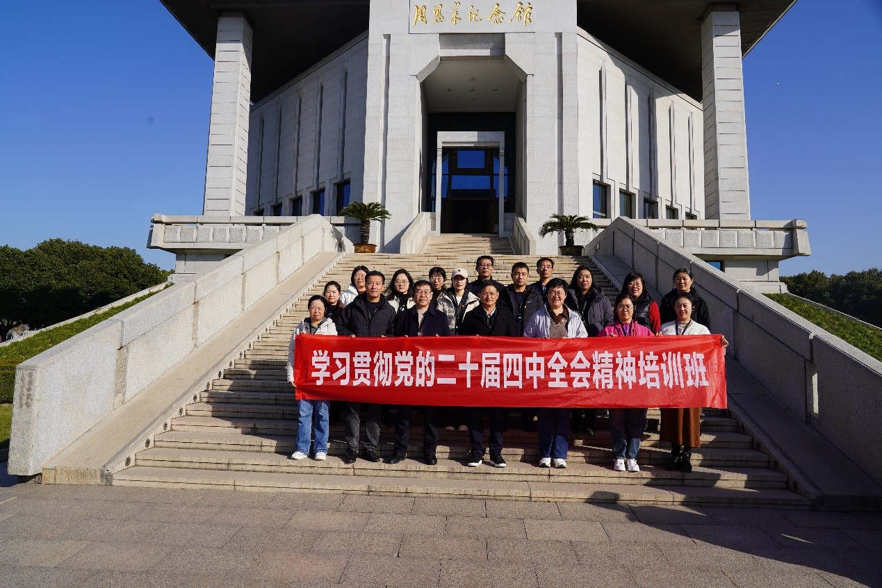 本次培训采用音像教学、现场教学、理论教学等方式进行。在音像教学环节,全体党员一同观看了《榜样周恩来—枝叶总关情》、《榜样周恩来—两袖拂清风》、《大无大有—身边人眼中的周恩来》,感怀周总理热爱人民、心系民生、清廉无私的精神风范。现场教学环节,全体党员参观了周恩来纪念馆、周恩来故居,并在周恩来纪念馆重温入党誓词,党员们从每一张老旧照片、每一件朴素实物、每一个感人故事中缅怀了周总理为党、人民、国家和人民军队建立的卓著功勋,深刻感悟到周总理坚定的共产主义信念、顾全大局的政治品格、心怀群众的人民情怀、艰苦朴素的工作作风。理论教学环节,江苏省委党校黄建军教授作了《在接续奋斗中谱写中国式现代化新篇章—学习贯彻党的二十届四中全会精神》的专题讲座,深入解读了党的二十届四中全会召开的时代背景和重大意义,中国未来五年发展的宏伟蓝图和战略部署等。