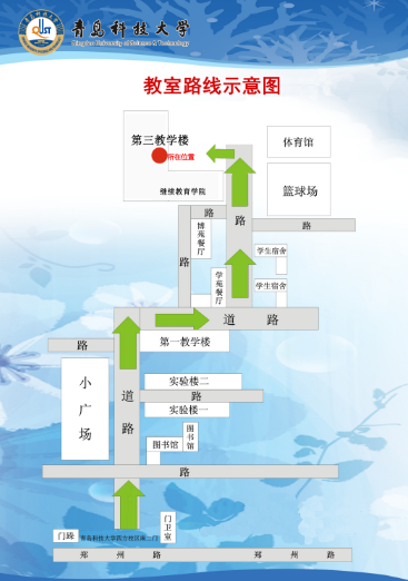 上课地点为四方校区第三教学楼,具体地址为:青岛市市北区郑州路53号谈球吧官方网站第三教学楼,考生可根据地址自行导航前往,或根据路线图前往。