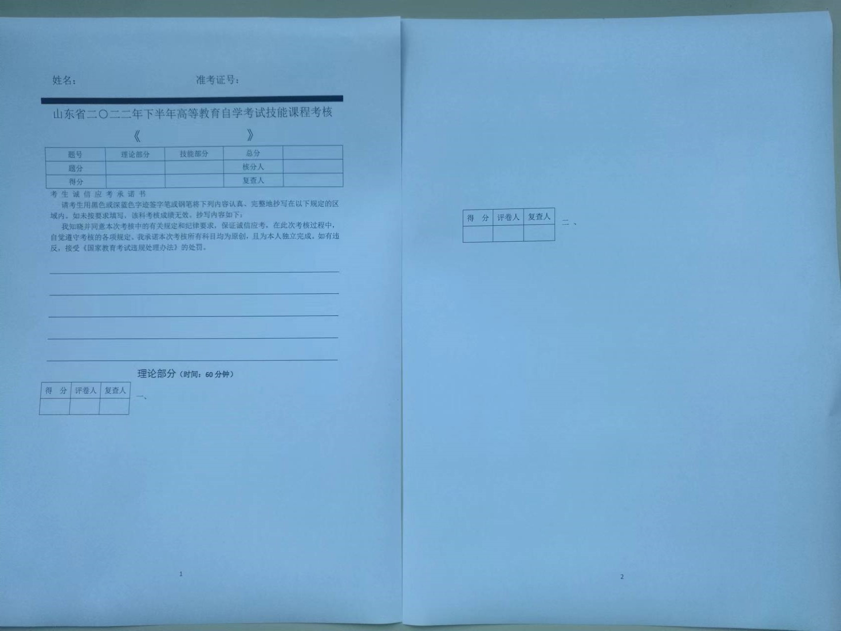 将标准答题纸用A4纸张打印(格式不能改变)后作答,建立一文件夹(文件夹以“理论部分”命名),将作答后各页拍照成电子版保存(注意:如果答案有多页,要拍在一张照片里)。
